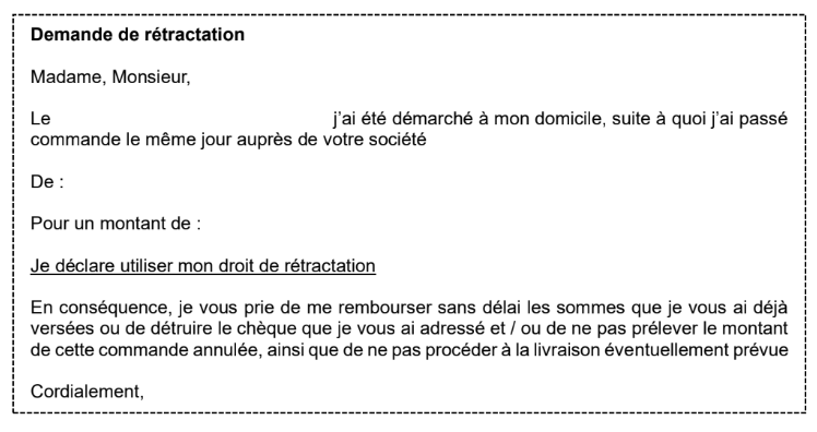 – les modalités d’exercice du droit de rétractation,
